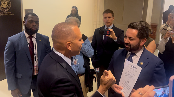 House Speaker Mike Johnson, R-La., got into a tense confrontation with two Democratic senators outside his office on Wednesday as anxiety runs high on...